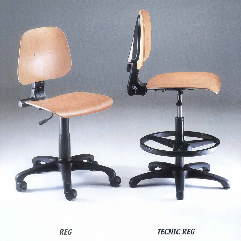 Sgabelli regolabili in legno di faggio con o senza rotelle.